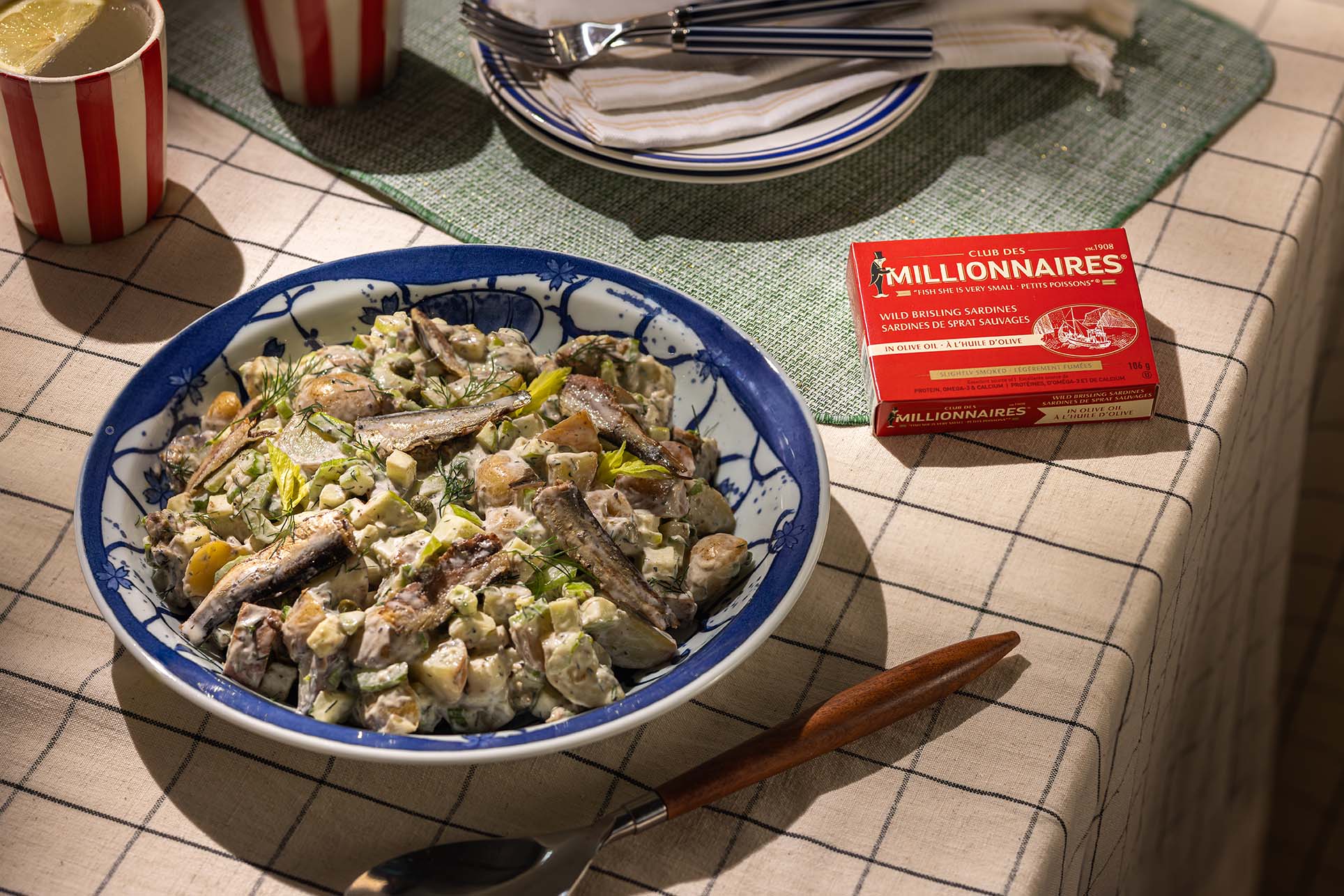 - 1 can (106 g) Club des Millionnaires Wild Brisling Sardines in Olive Oil