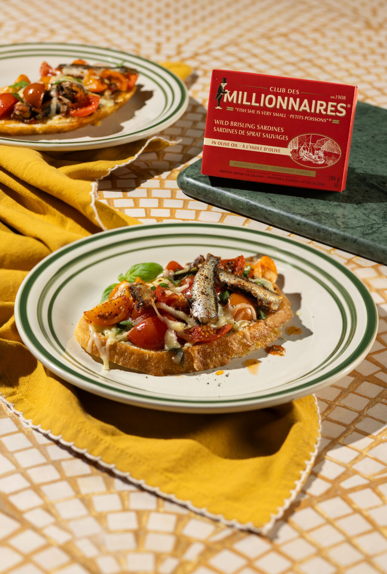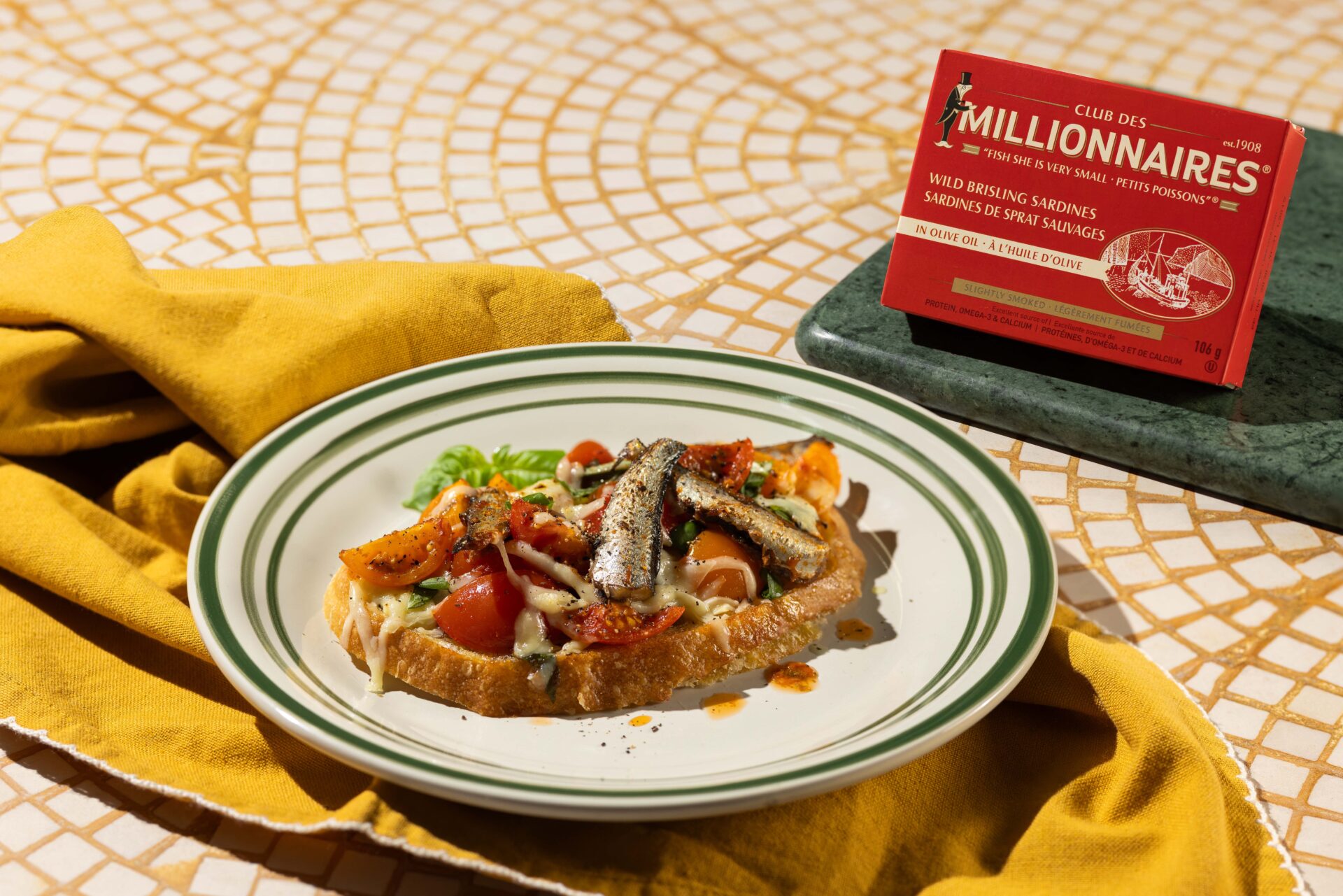 - 1 can (106 g) Club des Millionnaires Wild Brisling Sardines in Olive Oil